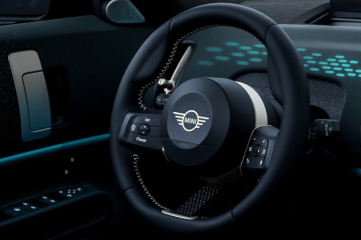 Inspired by the design of the classic Mini, our new steering wheel is slightly smaller in size to give you a more direct go-kart feeling. Instead of a third spoke, it now features a stylish, decorative fabric strap, along with a left control panel that allows you to activate the driver assistance systems.