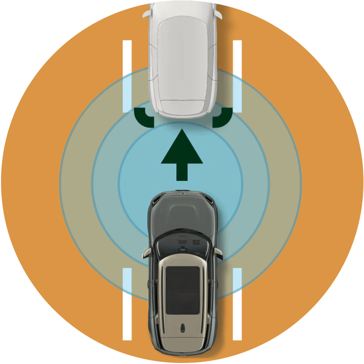 STANDARD FRONT COLLISION WARNING WITH BRAKE INTERVENTION.